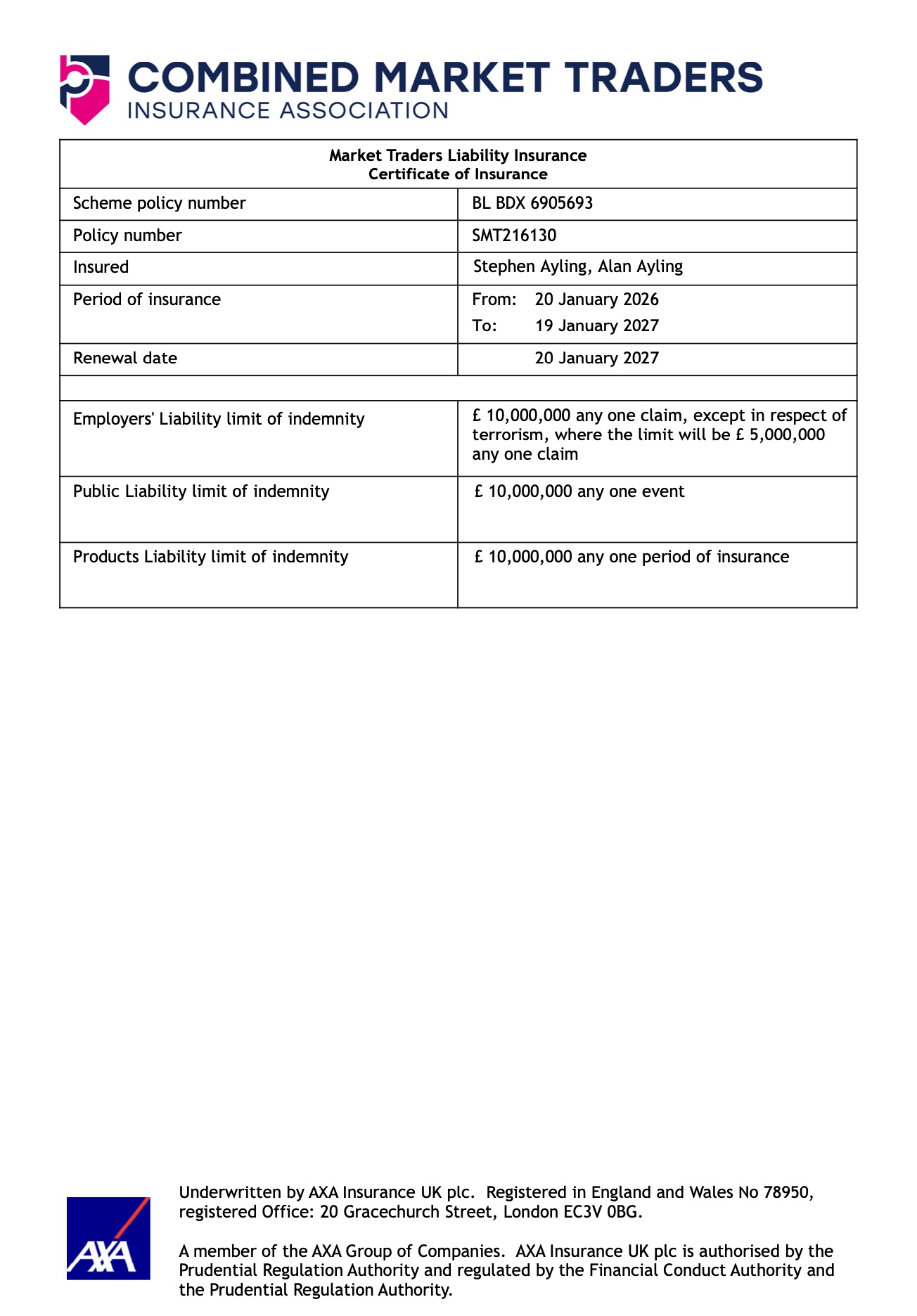 Here you can view or download a copy of our Public Liability Insurance certificate (£10m)